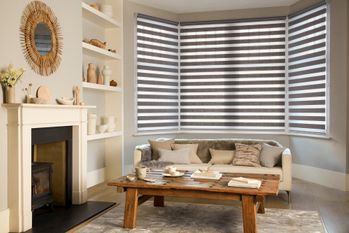 A clever combination of two Pleated fabrics within one blind for maximum flexibility.