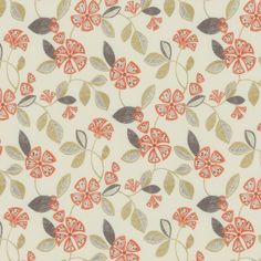 • Rioauburn swatch fabric with an orange leaf pattern on a white background