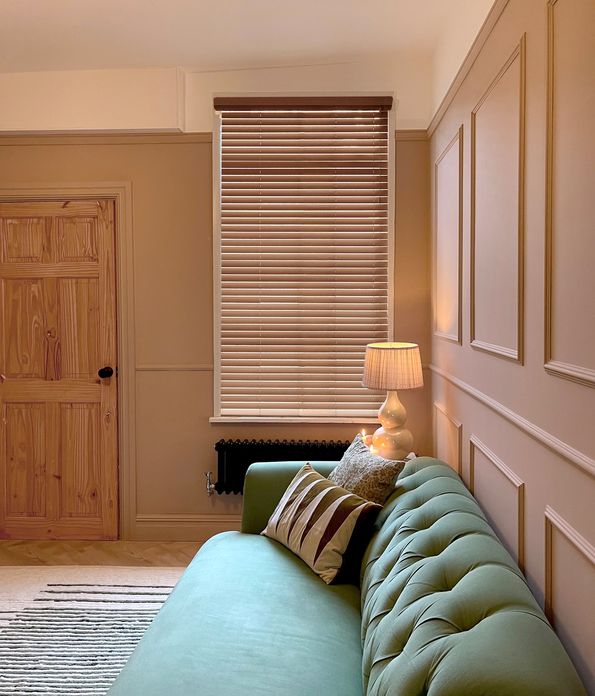 • Fruitwood metal venetian in a neutral coloured bedroom