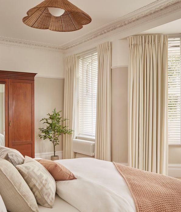 Our made-to-measure cream blackout curtains create a soft, classic and versatile look that reduces light coming into your room. They're a wonderful way of creating a tranquil atmosphere.