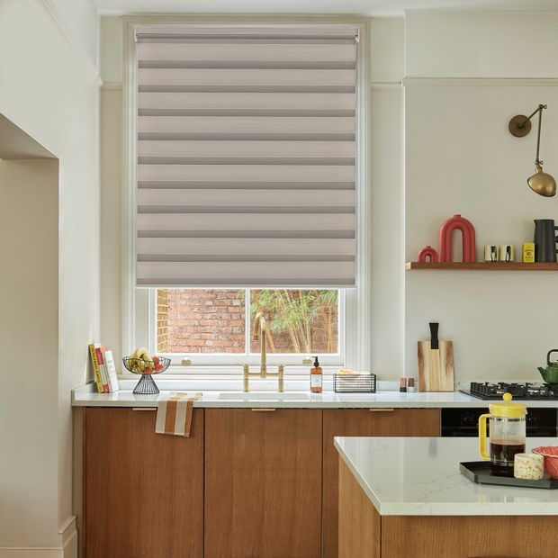 Our Day and Night blinds in our new Awaken range offers a gentle look with Light Beige bringing a serene and calming ambiance to any room. The soft beige fabric panels provide a warm, inviting feel, while the integrated sheer panels offer delicate light filtering that maintains privacy. This blind's understated elegance complements a variety of interior styles, making it a versatile addition to your home decor. Embrace the subtle sophistication and enjoy an harmonious balance of light and shade with these beautifully crafted blinds.