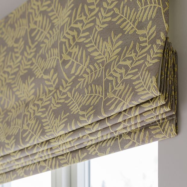 A Roman blind in Fronds Harvest will bring a little piece of the autumn countryside into any room in your home. If you think of a field of wheat or barley, just before the combine harvesters get to work, then you’ll be along the right lines, not only when it comes to colour but also to the pattern. There’s a touch of luxury to it too, as it’s a jacquard pattern, etching the fronds from the name into the golden background, revealing a mid-brown colour underneath. It’s quite a gentle pattern, the fronds bending gently as if swaying in the wind while the colours are muted for a peaceful look. One of six different colours this is probably the softest in terms of contrasting colours.