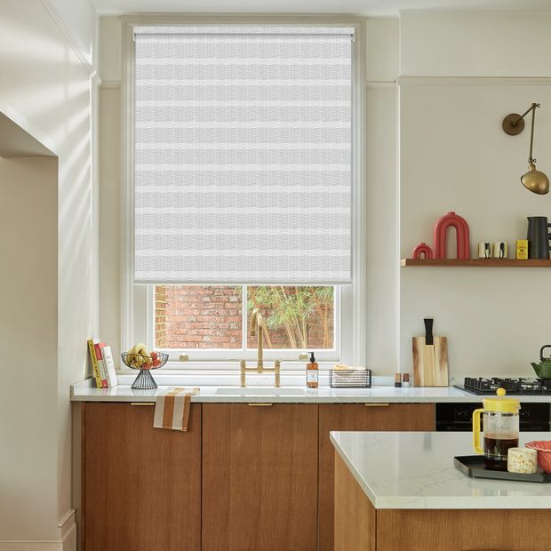 This is a fabric blind that is made up of two layers – one opaque and one sheer. The blinds work in a similar way to louvred blinds. The two fabric layers give the blind a striped appearance and provide flexible options for light control. In the opaque-sheer position the blinds gently filter light and provide daytime privacy, and in the opaque-opaque position, they block out the light to provide complete privacy. The blind can also be opened up fully away from the window.