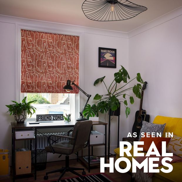 Add a touch of the Mediterranean at your window with this Roman blind in Nora Bruschetta. A warm and welcoming terracotta fabric that brings so much colour, sun-bleached to a paler shade in parts which softens the overall intensity of the colour there’s further interest added by a pattern. Simple and all the more effective because of it, abstract lines in white cut across the colour in seemingly random lines and curves. An excellent choice for adding heat to rooms with a large amount of white tiling that can look cold, such as bathrooms and kitchens, but also as an injection of colour in any room throughout your home. Keep it simple when styling, co-ordinating with colour rather than by the linear pattern to avoid it looking too busy.