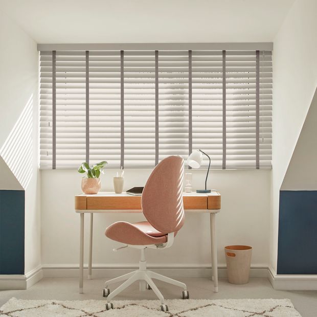 A Faux Wood blind in Smoke Grey will bring a little bit of depth to any window in your home. It’s a real mid-hue grey and it sits in the middle of the heat spectrum too, so dependent on how you style it you can push it one way or another. Blue or yellow will pull a cooler feel out of it, while other greys, green or brown will keep it a little warmer. Practical and hardwearing, you won’t need to worry too much about these wood blinds, as the painted PVC is designed for durability, will shrug off water and can simply be wiped clean should they encounter any little sticky fingers…or any larger ones too, meaning you can use them throughout your whole home without worrying.