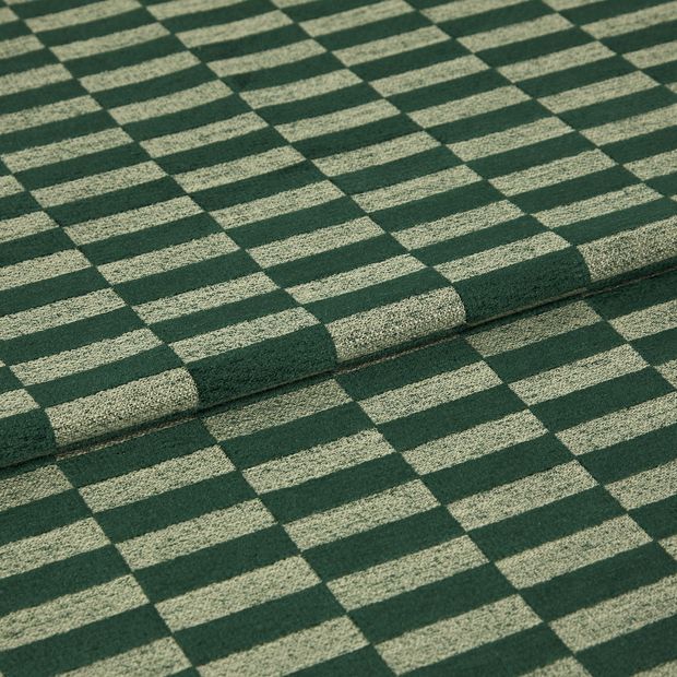 If you’re thirsting for something new in the world of Roman blind fabrics then our new Tuscan Lullaby range in the Mirage colourway could be just what your parched body, mind and soul need. Rows of rectangles make a modern patchwork all across the fabric, and it’s not just the twist of the shape that brings the traditional look up to date. The chenille fabric, a gorgeous shade of forest green, features a jacquard weave that cuts through the dense plush threads on alternate blocks to give a hazy shimmer of green and off-white, like a mirage in the desert.