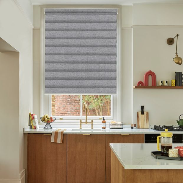 Introducing our Day and Night blinds in Twilight Light Grey, a modern twist on classic window dressings. These blinds, just as with our existing Day and Night range, feature alternating panels of solid and sheer fabric, allowing for seamless light control throughout the day. The subtle light grey shade is perfect for any decor, offering a clean and contemporary look. The textured fabric is where our new Twilight range elevates things, with a linen-look that adds depth without overwhelming, making these blinds an elegant yet understated addition to your home. Enjoy the perfect balance of style and function with our Twilight Light Grey blinds.