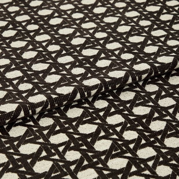 Go deep and moody with a Roman blind in Wyndham's Rattan Umber, the darkest colourway in this new range. A rich and lush coffee brown with an almost velveteen texture is cut through with the pattern created by the jacquard weave, the pale brown beneath exposed to make a stunning contrast. There’s a real luxurious feel to this colourway and it’s going to shine through whether the blind is fully extended in all its glory or raised in its deep folds. And if there wasn’t enough going on up on top, it’s also one of our sustainable fabrics, with a blend of 36% recycled polyester.