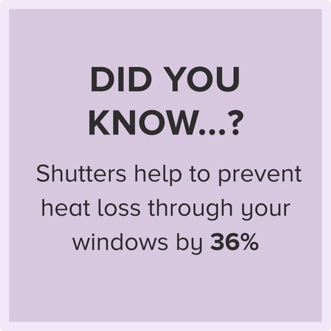 Shutters are one of the most effective ways of preventing heat loss in your home. Fitting snugly at your window, they help reduce heat loss in single glazed windows by 36%, plus help reduce draughts that can slip through the gaps in your frames.